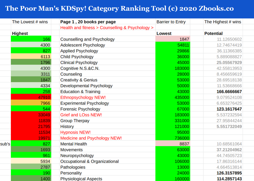 Now you can -IN ONE GLANCE- see if your book can be put in a profitable category, and EXACTLY which categories are profitable!